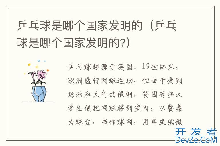 乒乓球起源于英国。19世纪末,欧洲盛行网球运动,但由于受到场开发者_如何学JAVA地和天气的限制,英国有些大学生便把网球移到室内,以餐桌为球台,书作球网,用羊皮纸做球拍,在餐桌上打来打去。因其打击时发