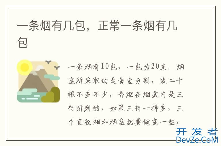 一条烟有10包,一包为20支。烟盒所采取的是黄金分割,装二十根不多不少。香烟在烟盒内是三行排列的,如果三行一样多,三个直径相加烟盒就要做宽一些,容易互相挤扁,所以一开发者_StackOverflow中