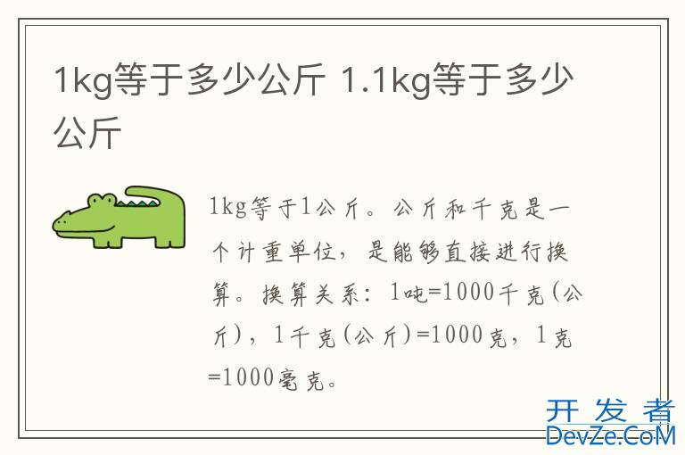 开发者_JS百科 1kg等于1公斤。公斤和千克是一个计重单位,是能够直接进行换算。换算关系:1吨=1000千克(公斤),1千克(公斤)=1000克,1克=1000毫克。公