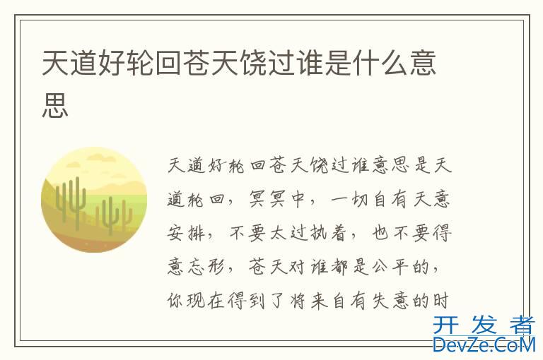 天道好轮回苍天饶过谁意思是天道轮回,冥冥中,一切自有天意安排,不要太过执着,也不要得意忘形,苍天对谁都是公平的,你现在得到了将来自有失意的时候,所以永远记得,做人留一线,日后好相见。或者说低调行事,切