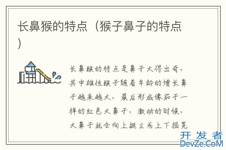 长鼻猴的特点是鼻子大得出奇,其中雄性猴子随着年龄的增长鼻子越来越大,最后形成像茄子一样的红色大鼻子,激动的时候,大鼻子就会向上挺立或上下摇晃,而雌性的鼻子却比较正常。长鼻猴的大肚子中有着一个很大的、袋