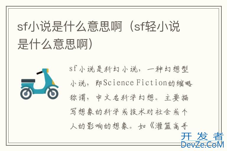 sf小说是科幻小说,一种幻想型小说,即Science Fiction的缩略称谓,中文名科学幻想。主要描写想象的科学或技术对社会或个人的影响的想象。如《灌篮高手》等体育系、《彼氏彼女》等情感系等)及注重