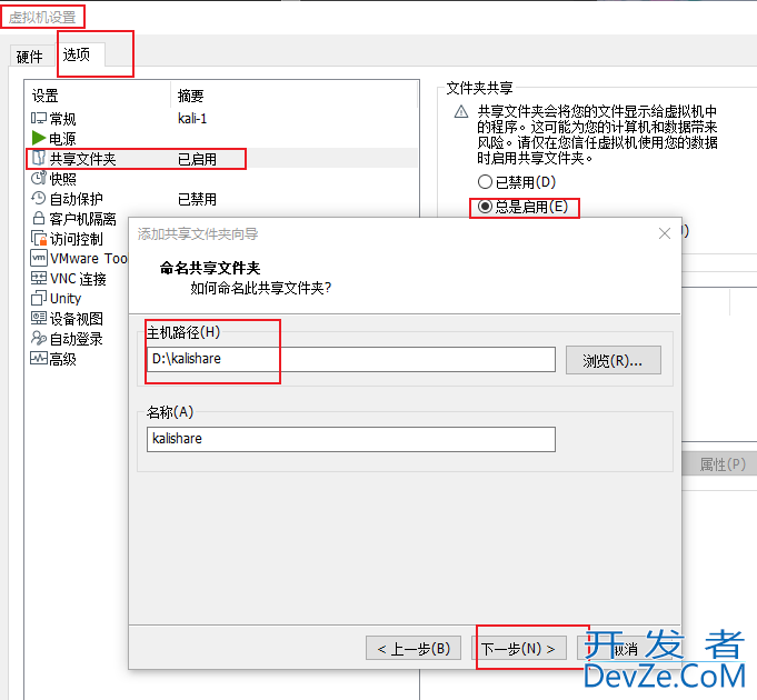 目录虚拟机与物理机的文件共享1 虚拟机设置2 验证Kali下分享文件夹功能是否启用3 创建挂载目录4 失现临时挂载(下次开机就失效)5 实现永久挂载6 验证功能总结虚拟机与物理机的文件共享