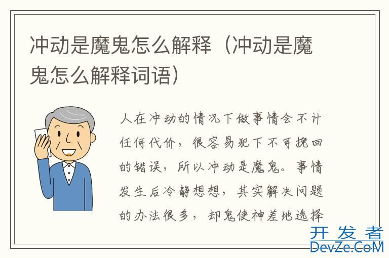 人在冲动的情况下做事情会不计任何代价,很容易犯下不可挽回的错误,所以冲动是魔鬼。事情发生后冷静想想,其实解决问题的办法很多,却鬼使神差地选择了最冲动的方式,仿佛是魔鬼迷了心窍。日常生活中,许多人都会在