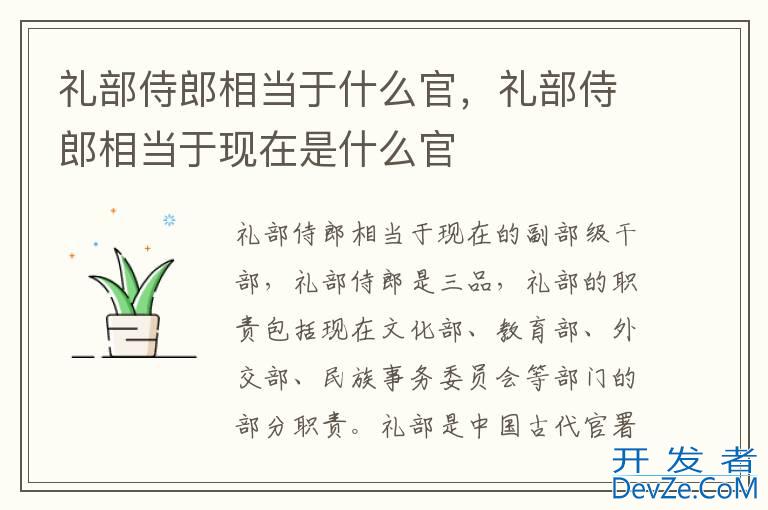 开发者_运维技巧 礼部侍郎相当于现在的副部级干部,礼部侍郎是三品,礼部的职责包括现在文化部、教育部、外交部、民族事务委员会等部门的部分职责。礼部是中国古代官署之一。北魏始置,隋朝