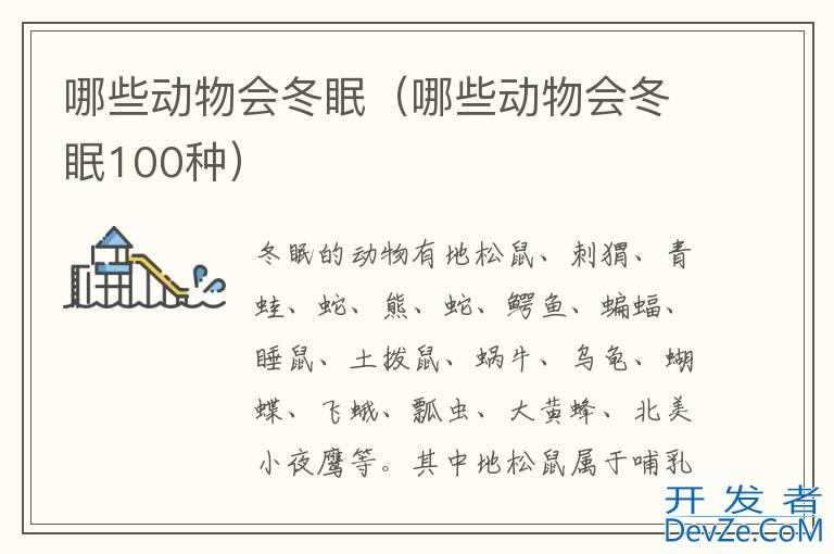 冬眠的动物有地松鼠、刺猬、青蛙、蛇、熊、蛇、鳄鱼、蝙蝠、睡鼠、土拨鼠、蜗牛、乌龟、蝴蝶、飞蛾、瓢虫、大黄蜂、北美小夜鹰等。其中地松鼠属于哺乳动物,在每年冬季温度降低时,心跳就会降低,进入睡眠模式,而刺