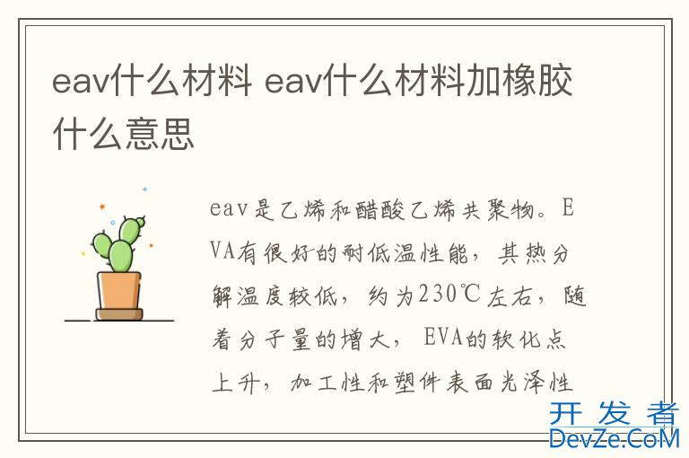开发者_开发问答 eav是乙烯和醋酸乙烯共聚物。EVA有很好的耐低温性能,其热分解温度较低,约为230℃左右,随着分子量的增大, EVA的软化点上升,加工性和塑件表面光泽性下降,但强度增加,冲