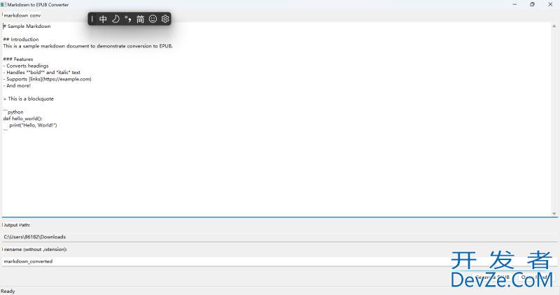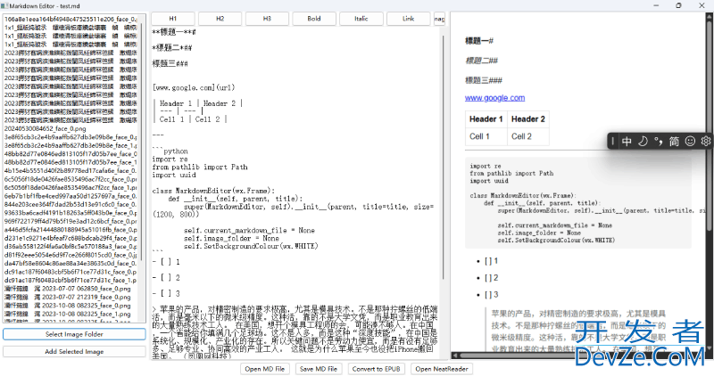 目录引言为什么选择Markdown和EPUB?工具介绍:Markdown to EPUB Converter核心功能界面预览技术实现解析1. 图形界面构建2. Markdown转html3. EPUB生成4. 阅读器集成源代码深度解析核心类结构界面布局代码分析EPUB生