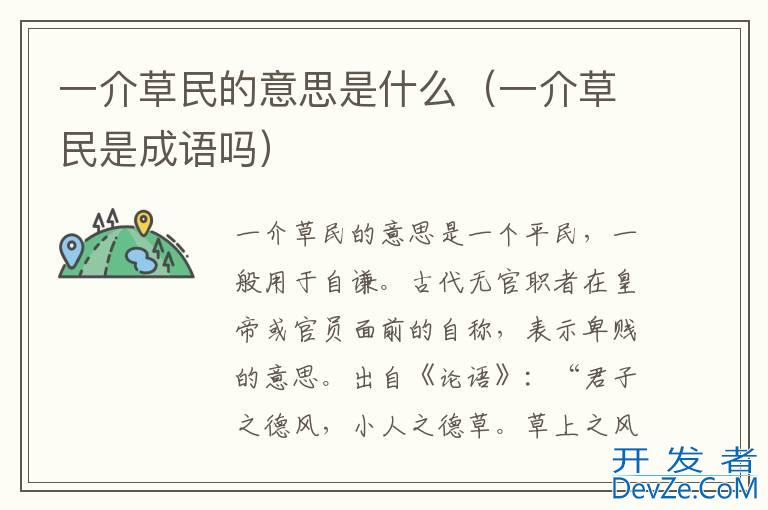 一介草民的意思是一个平民,一般用于自谦。古代无官职者在皇帝或官员面前的自称,表示卑贱的意思。出自《论语》:“君子之德风,小人之德草。草上之风,必偃”。意思是“小人”就像开发者_StackOverflo