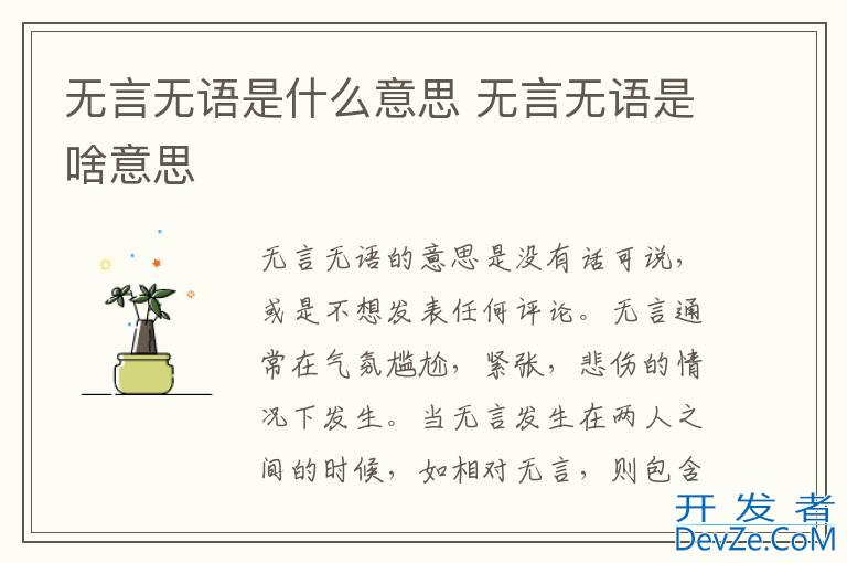 开发者_如何学运维 无言无语的意思是没有话可说,或是不想发表任何评论。无言通常在气氛尴尬,紧张,悲伤的情况下发生。当无言发生在两人之间的时候,如相对无言,则包含遗