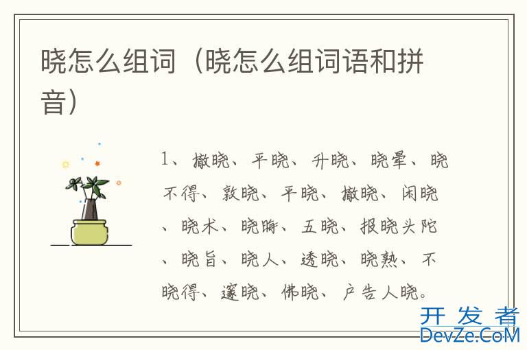 1、撤晓、平晓、升晓、晓晕、晓不得、敦晓、平晓、撤晓、闲晓、晓术、晓晦、五晓、报晓头陀、晓旨、晓人、透晓、晓熟、不晓得、邃晓、佛晓、户告人晓。2、晓梦、晓风、晓领、破晓时分、精晓、无从知晓、晓不得、晓