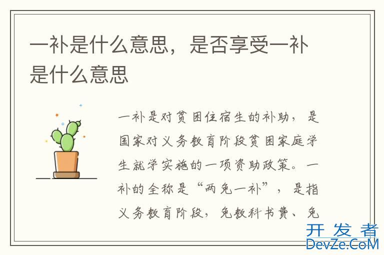 开发者_如何学JAVA 一补是对贫困住宿生的补助,是国家对义务教育阶段贫困家庭学生就学实施的一项资助政策。一补的全称是“两免一补”,是指义务教育阶段,免教科书费、免杂费、补助寄