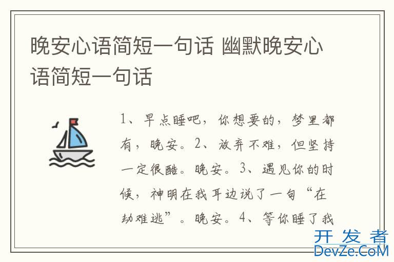1、早点睡吧,你想要的,梦里都有,晚安。2、放弃不难,但坚持一定很酷。晚安。3、遇见你的时候,神明在我耳边说了一句“在劫难逃”。晚安。4、等你睡了我再睡,好久没有听过这句话了。晚安。5、人生没有白费的