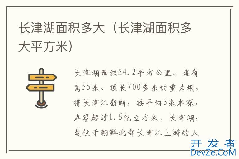 开发者_开发技巧 长津湖面积54.2平方公里。建有高55米、顶长700多米的重力坝,将长津江截断,按平均3米水深,库容超过1.6亿立方米。长津湖,是位于朝鲜北部长津江上游的人工湖,在咸镜