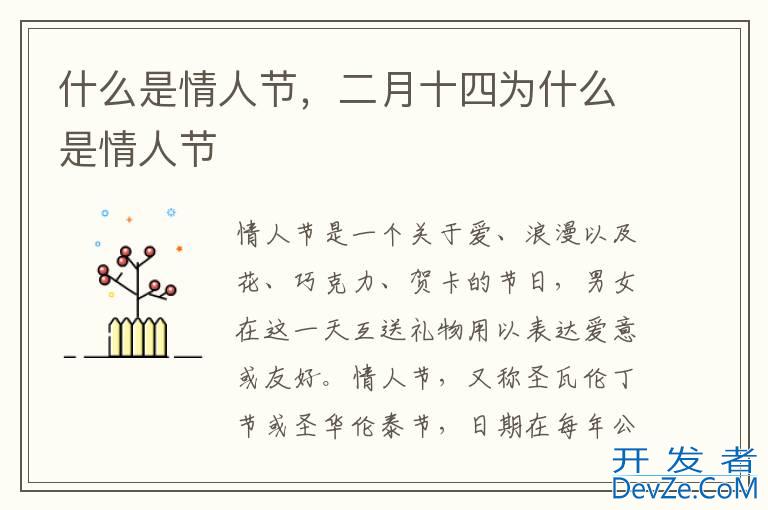 开发者_如何学C 情人节是一个关于爱、浪漫以及花、巧克力、贺卡的节日,男女在这一天互送礼物用以表达爱意或友好。情人节,又称圣瓦伦丁节或圣华伦泰节,日期在每年公历的2月14日,是西方国家的传统