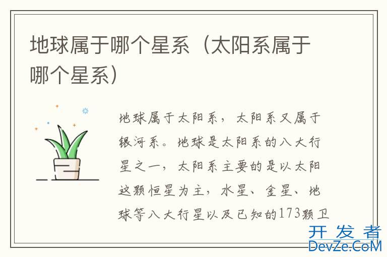 地球属于太阳系,太阳系又属于银河系。地球是太阳系的八大行星之一,太阳系主要的是以太阳这颗恒星为主,水星、金星、地球等八大行星以及已知的173颗卫星、开发者_运维问答5颗已知的矮行星等天体构成的集合体。