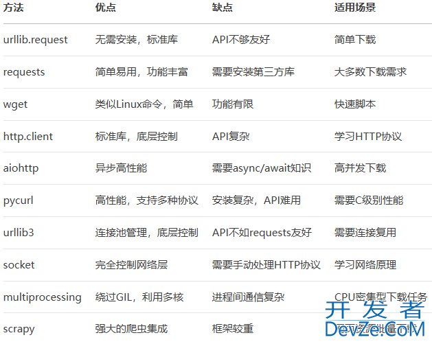 目录1. 使用urllib.request(python标准库)2. 使用requests库(最常用)3. 使用wget库4. 使用http.client(底层HTTP客户端)5. 使用aiohttp(异步下载)6. 使用pycurl(libcurl绑定)7. 使用urllib3(requests底层库