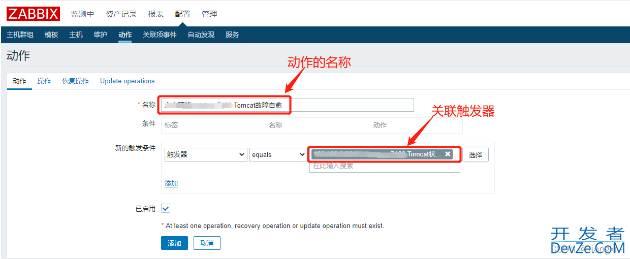 目录1.背景及实现方式方法2.编写故障自愈脚本3.配置zabbix动作机制实现Tomcat故障自愈3.1.创建动作3.2.配置故障自愈消息内容以及执行自愈脚本3.3.动作创建完成4.观察故障自愈shell脚本配合zabbix实现tomcat的故障自愈