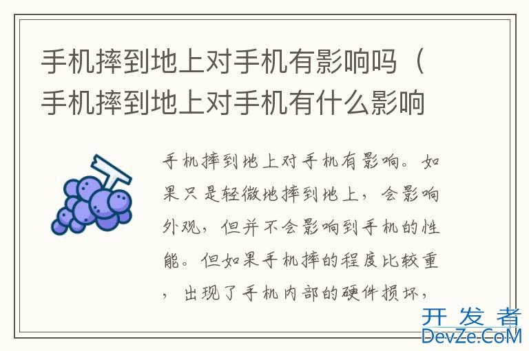 品牌型号:iPhone13 pro pro 系统:iOS 15.5开发者_开发百科 手机摔到地上对手机有影响。如果只是轻微地摔到地上,会影响外观,但并不