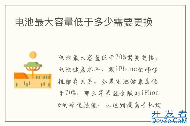品牌型号:iPhone13 pro pro 系统:iOS 15.6.1开发者_C百科 电池最大容量低于70%需要更换。电池健康水平,跟iPhone的峰值性能有关系。如果