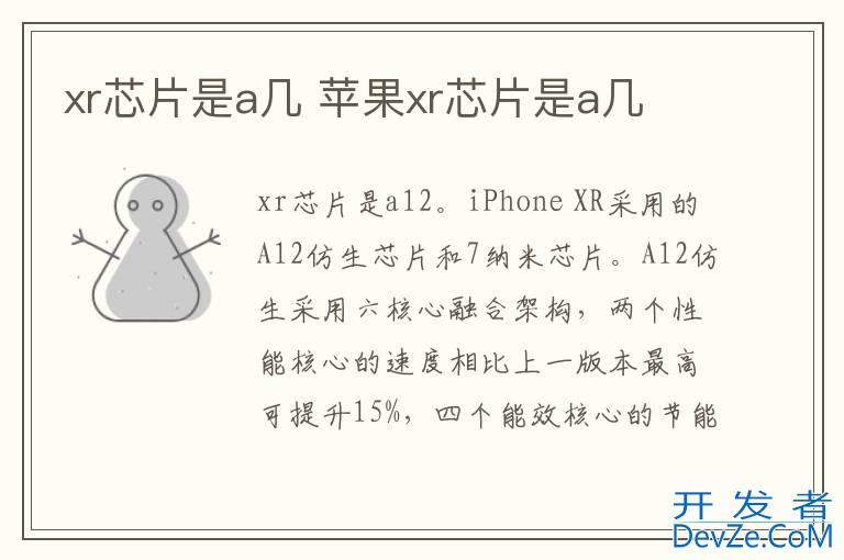 品牌型号:iPhone XR 系统:iOS 16.0xr芯片是a12。iPhone XR采用的A12仿生芯片和7纳米芯片。A12仿生采用六核心融合架构,两个性能核心的速度相比上一版本最高可提升15%,