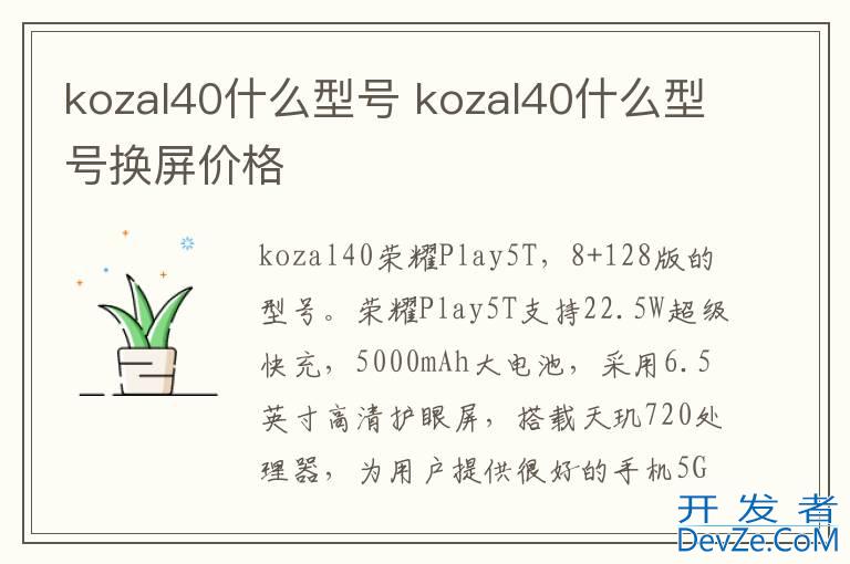 品牌型号:荣耀Play5T 系统:Magic UI 4.0 kozal40荣耀Play5T,8+128版的型号。荣耀Play5T支持22.5W超级快充,5000mAh大电池,采用6.5英寸高清护眼屏、