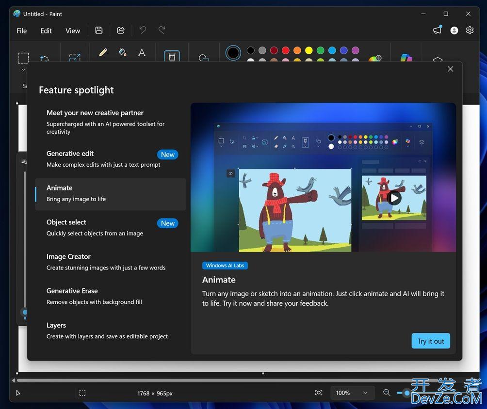 科技媒体 Windojavascriptws Latest 今天(10 月 17 日)发布博文,报道称在 Windows 11 新版画GABFDaBx图(Paint)应用中,微软正测试“AI 动画生成”与“生成式图像编辑”两项全新