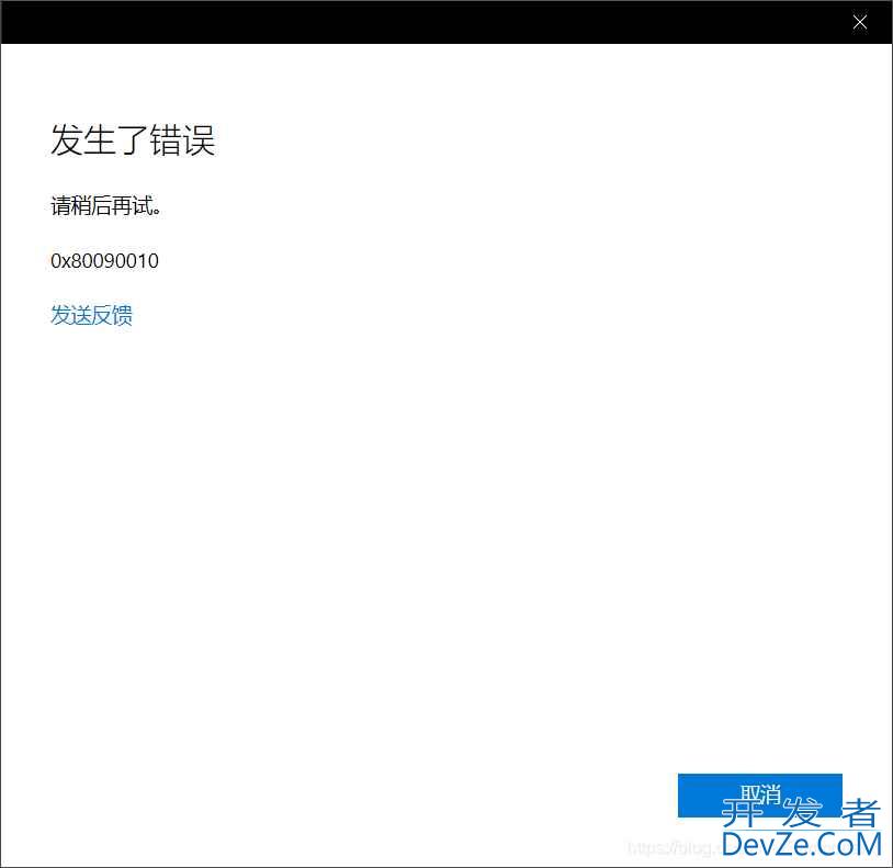 登录微软商店报错0x80090010,出问题前电脑重装过,登录账javascript号时遇到如下图问题。