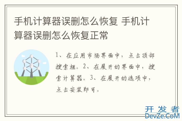 品牌型号:华为p50 系统:HarmonyOS 2.0.0误删手机计算器可以在应用市场中,搜索并安装计算器即可。以手机华为p50为例,误删手机计算器恢复的步骤分为3步,具体操作如下:1点击搜索框开发者