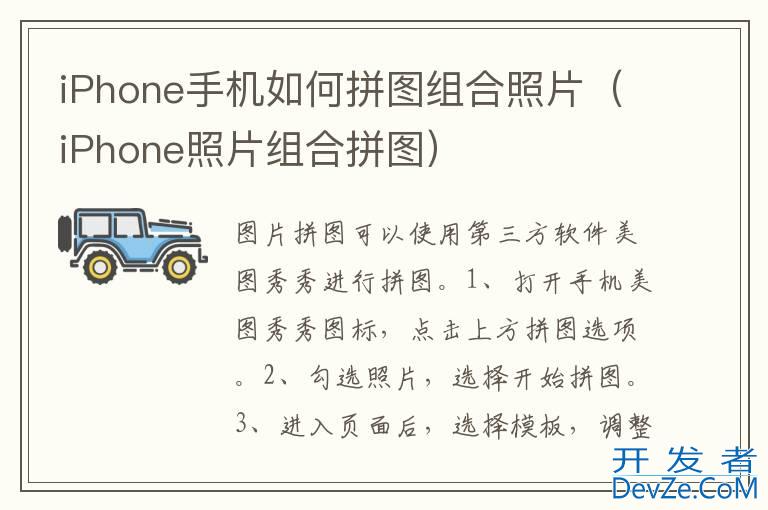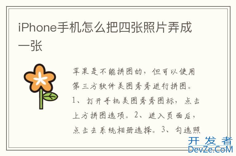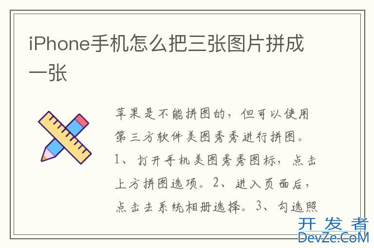 品牌型号:iPhone13 pro 系统:IOS15.4以iPhone13 pro为例,iPhone是不能拼图的,但可以使用第三方软件开发者_开发技巧美图秀秀进行拼图。分为5步,具体步骤如下:1进入美