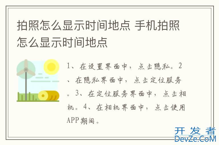 品牌型号:iPhone 12 系统:iOS15.4拍照显示时间地点需要在设置隐私界面中,点击定位服务选择相机设置即可。以iPhone 12 pro手机为例,拍照显示时间地点的步骤为4步,具体操作如下: