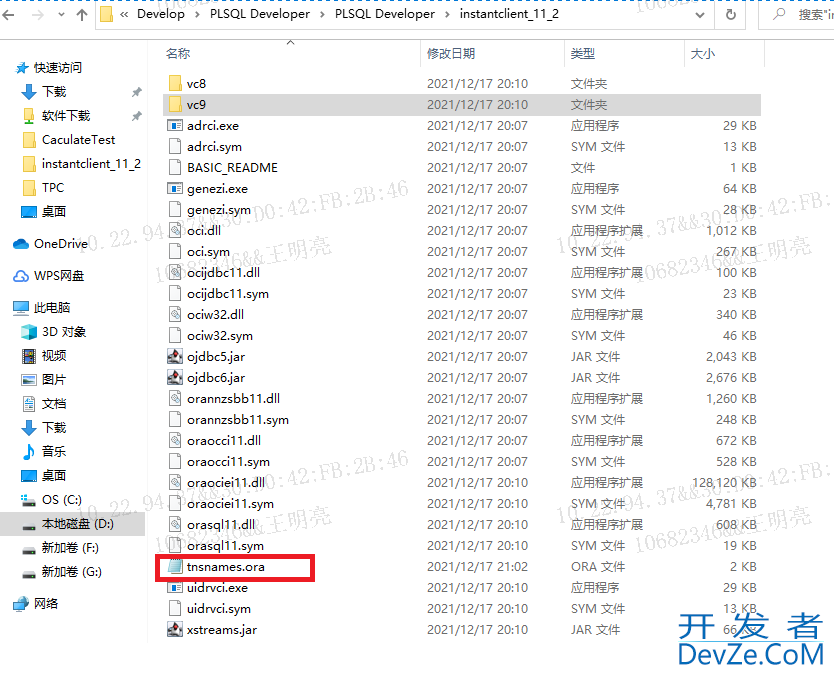 (1)首先下载in开发者_数据库stantclwww.devze.comient_11_2 (解压如下) 修改instantclient_11_2/tnsnames.o编程客栈ra 文件,将你需要链接的oracle服务器地址写上,tnsnames.ora格式和部分文件内容如下: