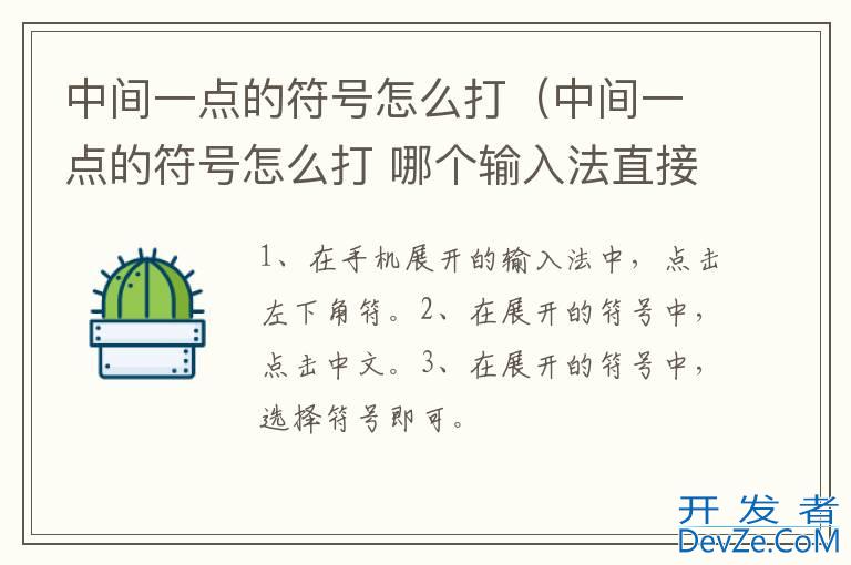品牌型号:华为p50 系统:HarmonyOS 2.0.0打出中间一点的符号需要在输入法的中文符号中,选择符号即可。以手机华为p50为例,打出中间一点的符号步骤分为3步,具体操作如下:1点击符在手机展