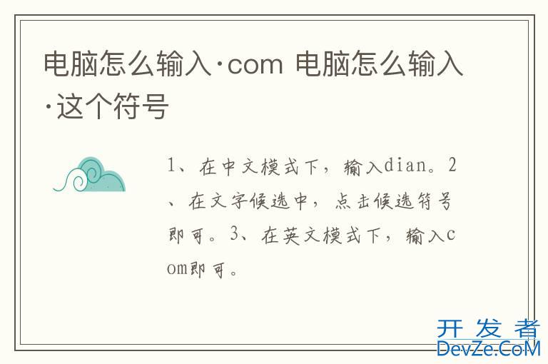 品牌型号:联想拯救者Y9000P 系统:Windows11电脑输入·com需要在中文模式下输入dian,在英文模式下输入com即可。以电脑联想拯救者Y9000P为例,电脑输入·com的步骤分为3步,具