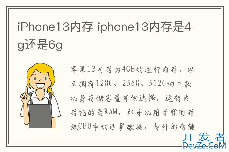 品牌型号:iPhone13 pro 系统:iOS 16.0iPhone13内存为4GB的运行内存,以及拥有128G、256G、512G的三款机身存储容量可供选择。运行内存指的是RAM,即手机用于暂时存