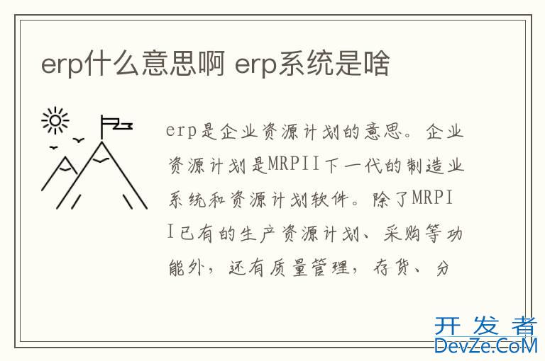 品牌型号:lenovo ThinkPad X250开发者_JAVA百科 系统:Windows 11erp是企业资源计划的意思。企业资源计划是MRPII下一代的制造业系统和资源计划软件。除了MRPII已