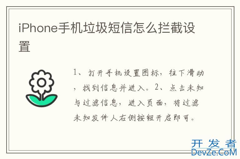品牌型号:iPhone13 pro 系统:IOS15.4以iPhone13 pro为例,iPhone手机短信拦截可以进入设置开启过滤未知发件人。分为2步,具体步骤如下:1进入设置信息打开手机设置图标,
