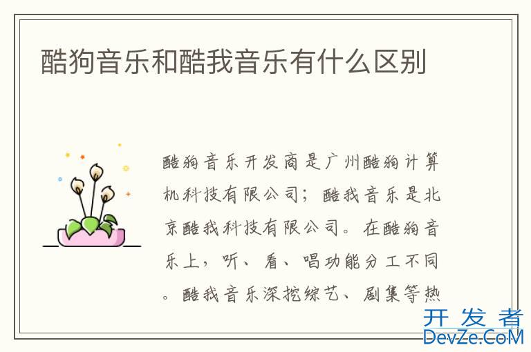 品牌型号:HUAWEI P50 Pocket 系统:HarmonyOS 3 软件版本:酷狗音乐11.1.5开发者_JAVA百科 1、开发商不同:酷狗音乐开发商是广州酷狗计算机科技有限公司;