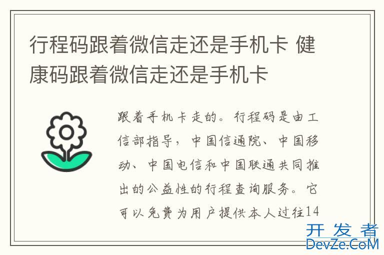品牌型号:iPhone13 pro pro 系统:iOS 16.0 软件版本:微信8.0.29行程码是跟着手机卡走的。行程码是由工信部指导,中国信通院、中国移动、中国电信和中国联通共同推出的公益性的行