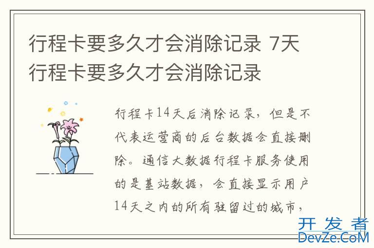 品牌型号:iPhone13 pro pro 系统:iOS 16.0 软件版本:微信8.0.29行程卡14天后消除记录,但是不代表运营商的后台数据会直接删除。通开发者_运维百科信大数据行程卡服务使用的是