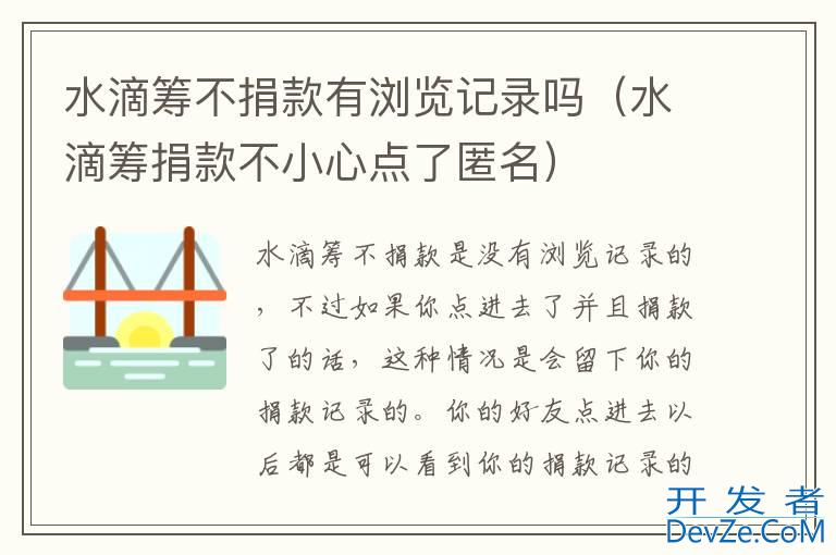 品牌型号:华为P50 系统:HarmonyOS3 软件版本:水滴筹3.4.8 水滴筹不捐款是没有浏览记录的开发者_运维技巧,不过如果你点进去了并且捐款了的话,这种情况是会留下你的捐款记录的。你的好友点