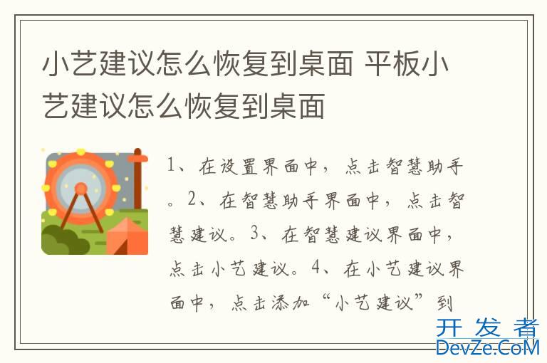 品牌型号:华为p40 系统:HarmonyOS 2.0.0小艺建议恢复到桌面需要在设置智慧助手界面中,点击智慧建议选择小艺建议设置即可。以手机华为p40为例,小艺建议恢复到桌面的步骤分为5步,具体操作