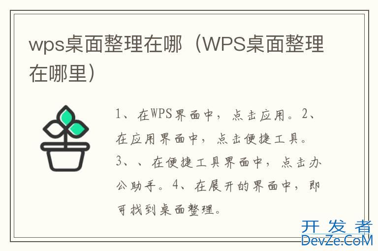 品牌型号:联想拯救者Y9000P 系统:Windows 11 软件版本:WPS 11.1.0.11194找到wps桌面整理需要在WPS应用界面中,点击便捷工具选择办公助手设置即可。以联想拯救者Y900
