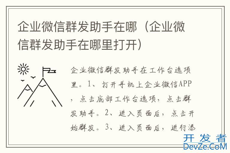 品牌型号:iPhone13 pro 系统:IOS15.4.1 软件版本:企业微信4.0.3以企业微信4.0.3为例,企业微信群发助手在工作台选项里。分为3步,具体步骤如下:开发者_运维技巧