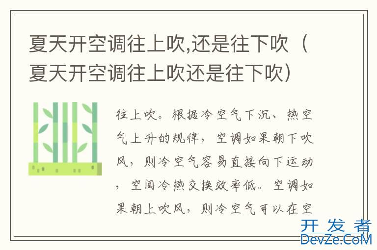 品牌型号:志高空调 系统:KF-35GW夏天空调往上吹好。根据冷空气下沉、热空气上升的规律,空调如果朝下吹风,则冷空气容易直接向下运动,空间冷热交换效率低。空调如果朝上吹风,则冷空气可以在空间中充分运