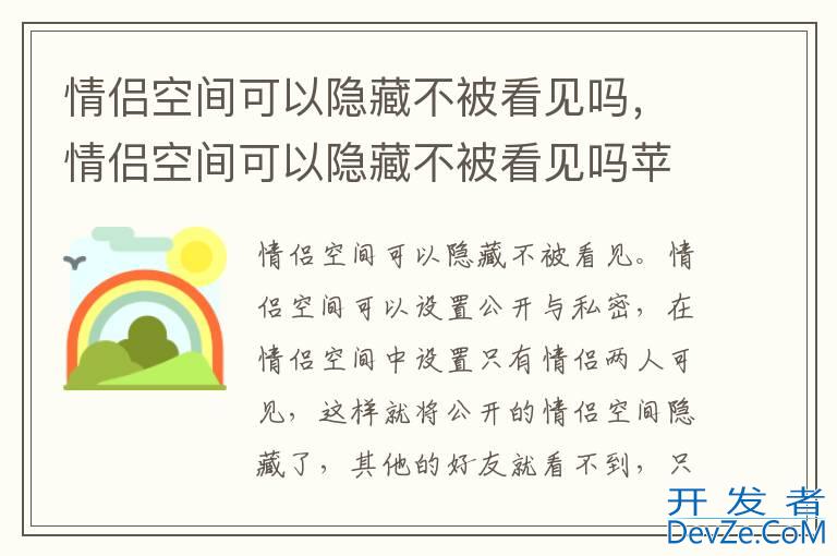 品牌型号:iPhone13 pro pro 系统:iOS 16.0 软件版本:QQ8.9.10情侣空间可以隐藏不被看见。情侣空间可以设置公开与私密,在情侣空间中设置只有情侣两人可见,这样就将公开的情侣