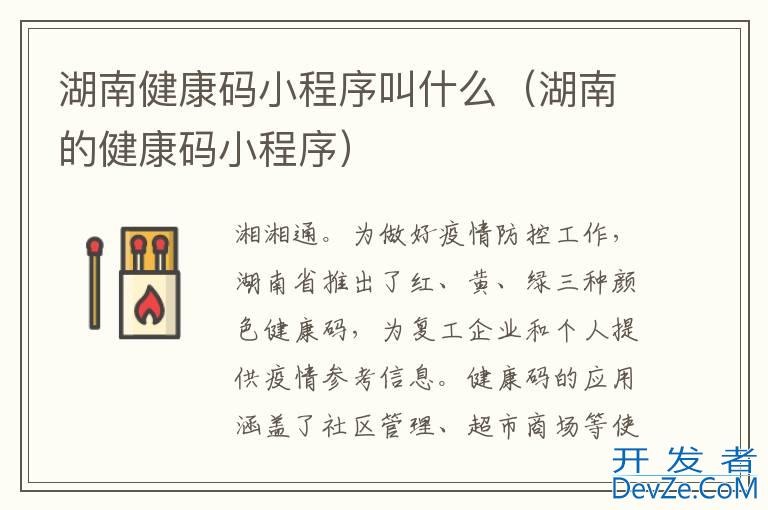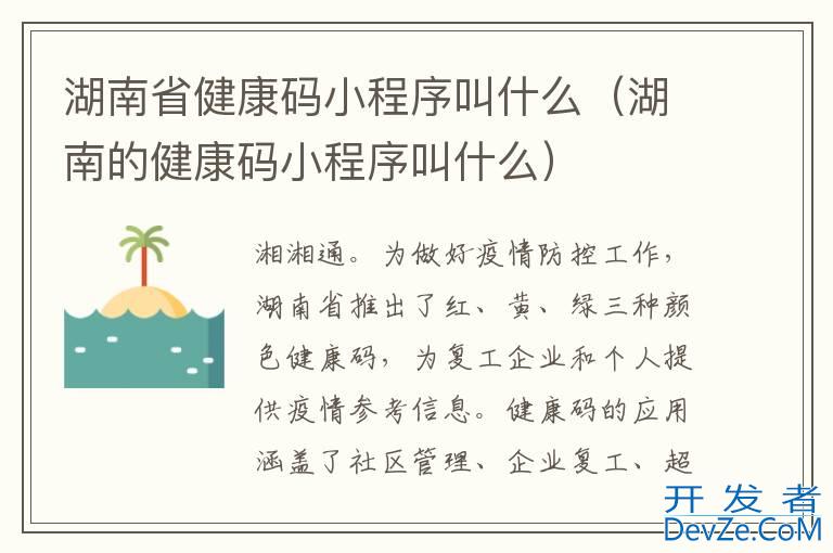 品牌型号:iPhone13 pro pro 系统:IOS15.5 软件版本:微信8.0.26开发者_C百科 湖南健康码小程序叫湘湘通。为做好疫情防控工作,湖南省推出了红、黄、绿三种颜色健康码,为复