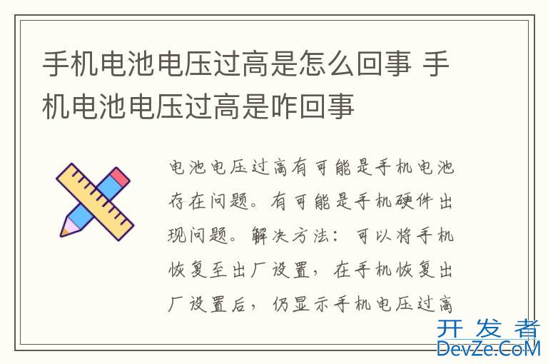 品牌型号:华为P50 系统:HarmonyOS3手机电池电压过高的原因:1、有可能是手机电池存在问题。解决方法:用户应及时向手机进行充电,不要等手机电量过低才开始充电,如果手机一直显示电池电压过高,且
