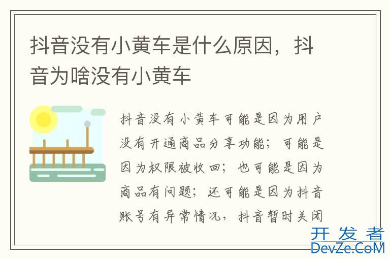 品牌型号:华为P50 系统:Har开发者_运维百科monyOS3 软件版本:抖音20.5.01、抖音没有小黄车可能是因为用户没有开通商品分享功能;解决方法 :用户必须开通商品分享功能,这样才可以在视频