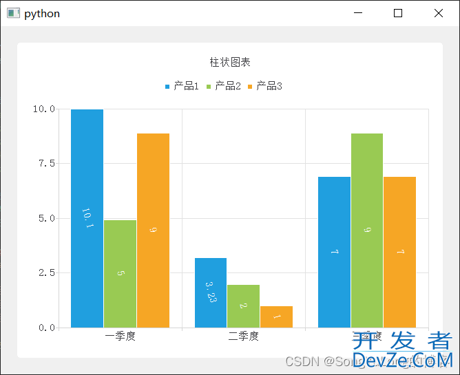 目录柱状图分类实现代码效果图柱状图分类 QBarSeries:竖向柱状图 QPercentBarSeries:竖向百分比柱状图